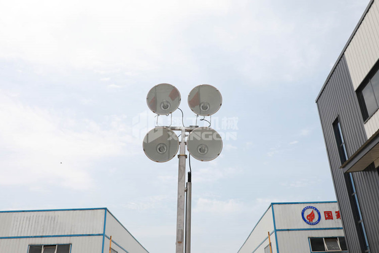 二、全方位移動照明車用途:在一些特殊環(huán)境場所例如:夜間施工,偏僻地點作業(yè)、防汛應(yīng)急照明、道路搶修、電力搶修、消防應(yīng)急照明等需要,無法用到市電,小型的可移動照明車就此設(shè)計出來,自帶發(fā)電機供電,加滿一箱油可工作13小時以上,持續(xù)加油可連續(xù)工作。
