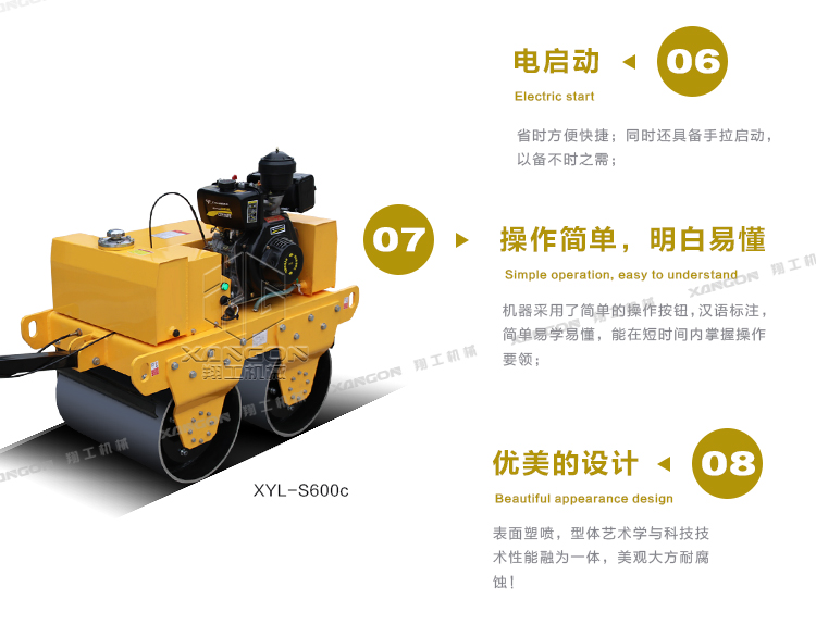 ·柴油動力采用電啟動,輕便靈活換向機構;雙驅雙振,保證了整體的壓實和爬坡能力;
