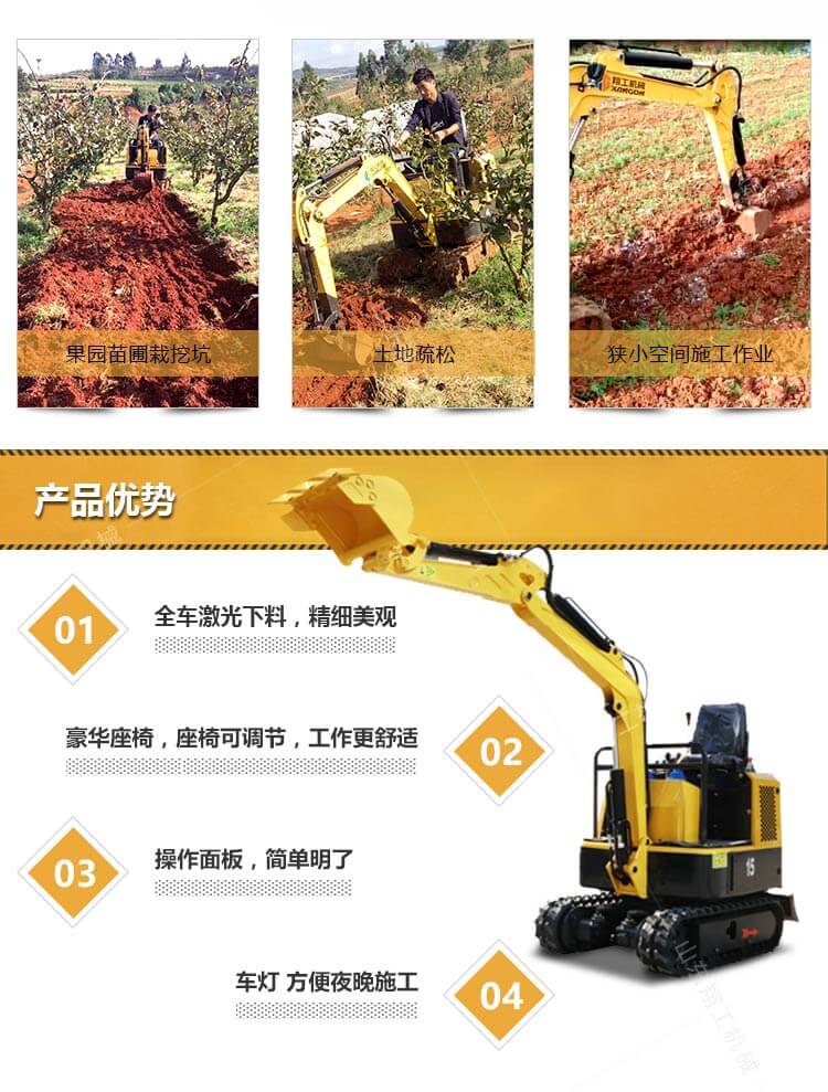 小型挖掘機質量輕、保養維修方便,具有獨特優勢。由于其小巧、靈活、多功能和效率高等特點,深受用戶的歡迎。