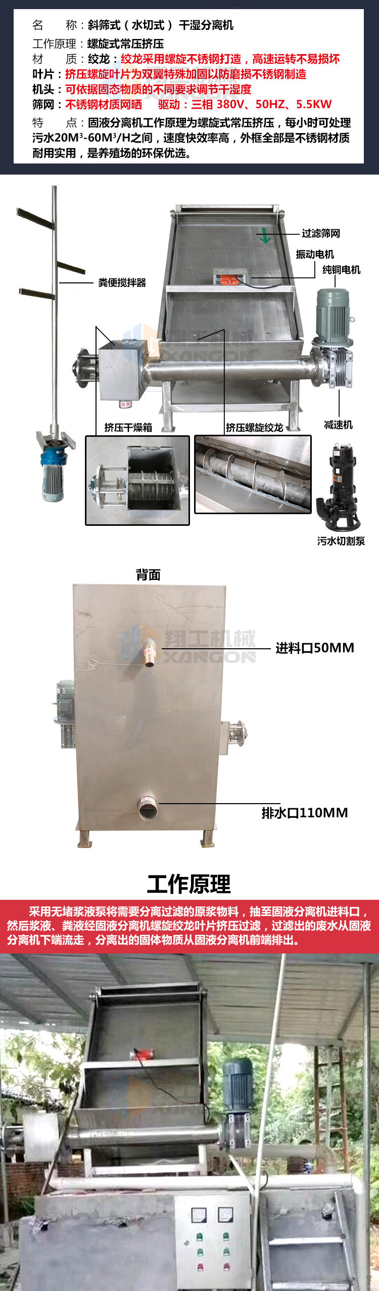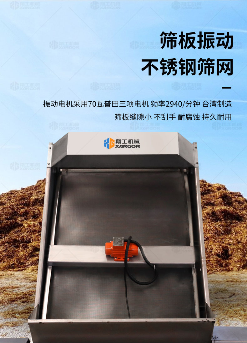 斜篩式固液分離機(jī)是一款針對(duì)含固率較小,含水率較大的污水、糞水、沼液等進(jìn)行大規(guī)模固液分離的設(shè)備。其設(shè)備外殼采用全不銹鋼打造,圓筒濾網(wǎng)則采用尼龍材質(zhì)制成——耐腐蝕性強(qiáng)。