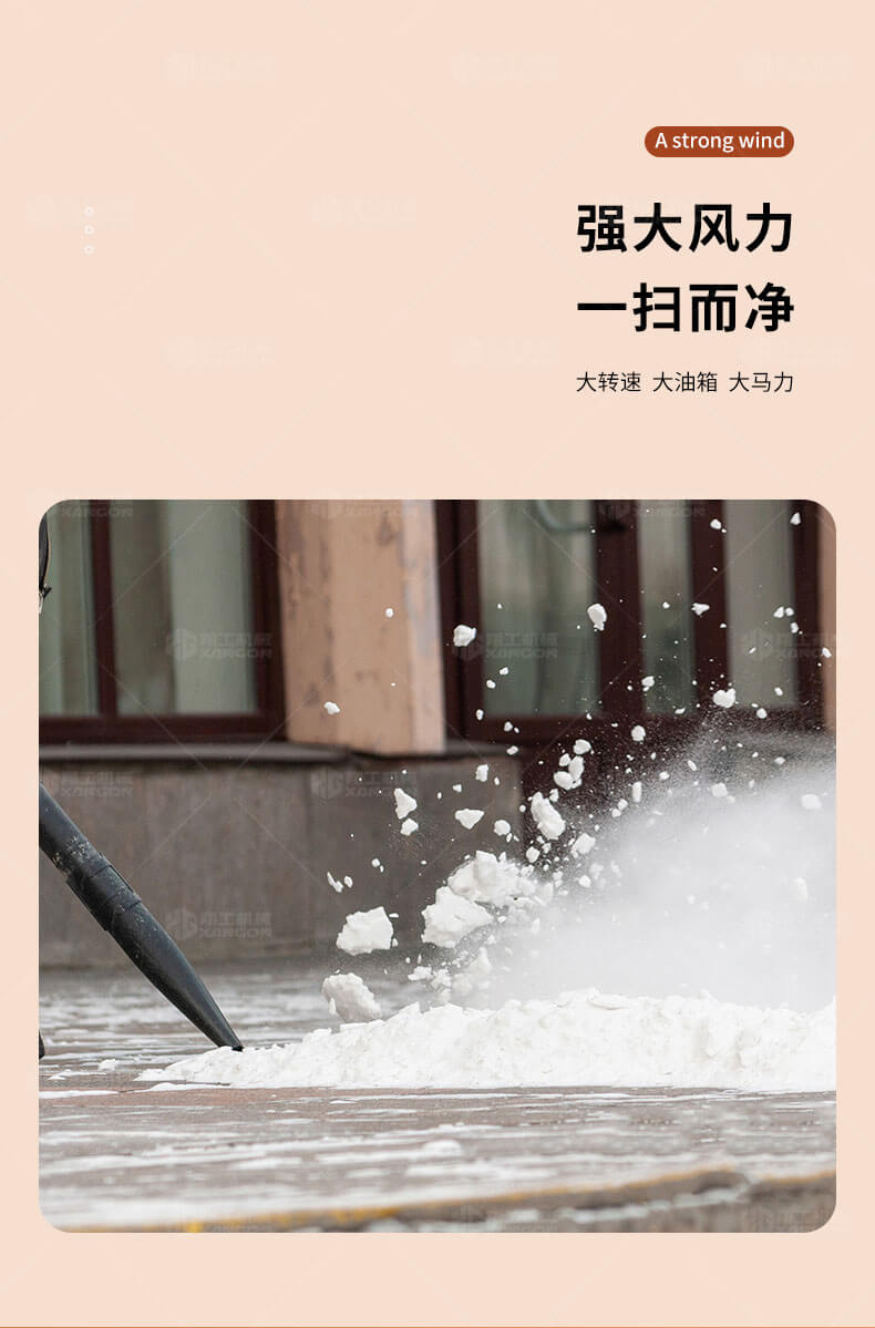 本機適用于修公路吹灰塵和吹雪,吹雪厚度達到15公分以上,鐵路上吹沙子,萊大柵溥膜上和露天的變壓器上吹雪(露天變壓器上吹雪時,需再配2.8米的伸縮噴風管)。公園內吹落葉,院子內吹雪及森林防火等.