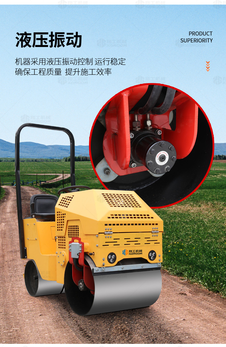 XYL-860座駕壓路機適用于各種溝槽沙土回填壓實、高層建筑地下室土方壓實、小區道路基礎壓實、各種草坪壓實、修補及各種小型工程的使用,解決了大型壓路機無法工作區域的壓實作業。