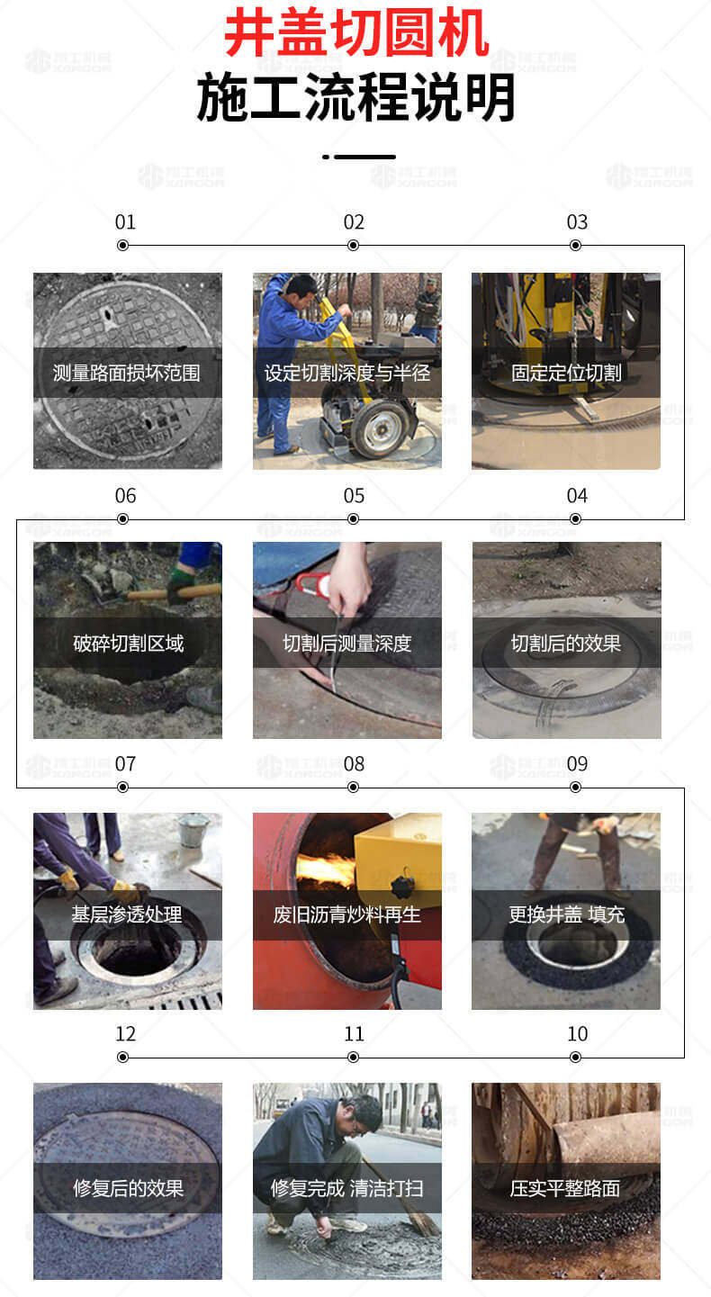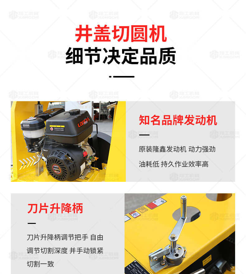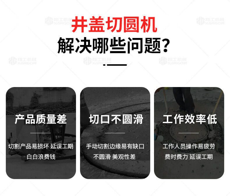 XG-1500型井蓋切割機(jī),專(zhuān)門(mén)用于對(duì)城市道路中機(jī)動(dòng)車(chē)道等井蓋周?chē)乃嗷炷粱驗(yàn)r青路面進(jìn)行圓形切割。為清楚井蓋周?chē)钠茡p路面提供分割區(qū)域,恢復(fù)后的地面美觀,延長(zhǎng)了路面的使用壽命。