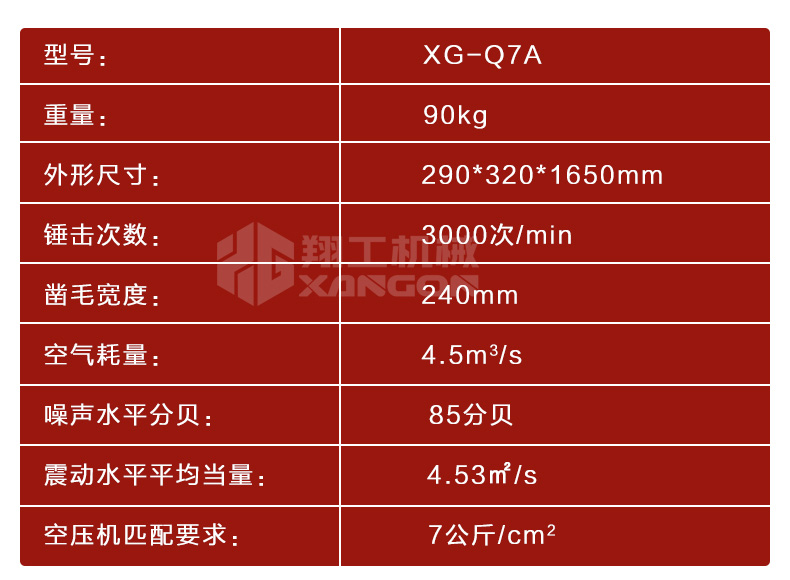 的鑿毛工具。重量90kg,鑿擊頻率7*2200,排量壓力3立方6kg壓力,鑿毛寬度300mm,鑿毛能力25--80平方每小時(根據施工要求如混凝土標號、鑿深等)。