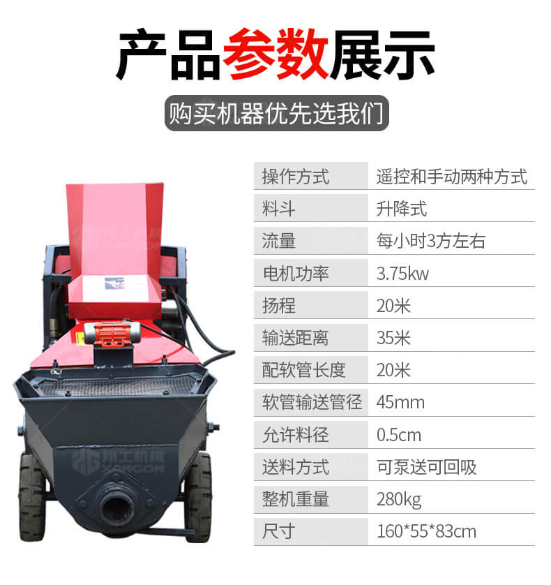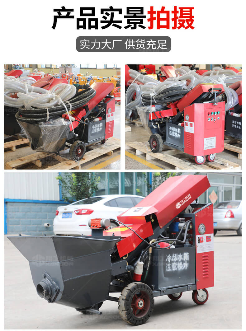 商品預拌砂漿,石膏砂漿,高標號自拌砂漿,高強無收縮灌漿料,自流本機器采用成熟液壓推進技術、泵車原理,革命性的采用斜體升降式布局,模塊化構件,且電機功率小,揚程高、體積小、重量輕等顯著優點,機器標配全軟管,方便移動易施工,改善了以往砂漿泵的體積笨重、磨損快、難維護的缺點。