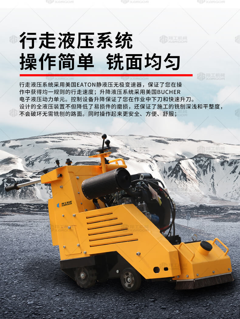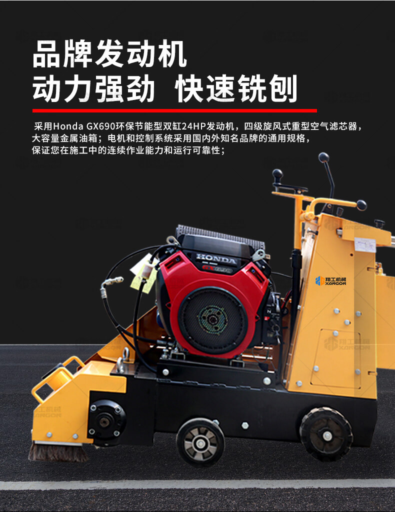 小型液壓銑刨機采用Honda GX690環保節能型雙缸24HP發動機,四級旋風式重型空氣濾芯器,大容量金屬油箱;采用名優電機和控制系統,保證您在施工中的連續作業能力和運行可靠性;