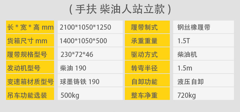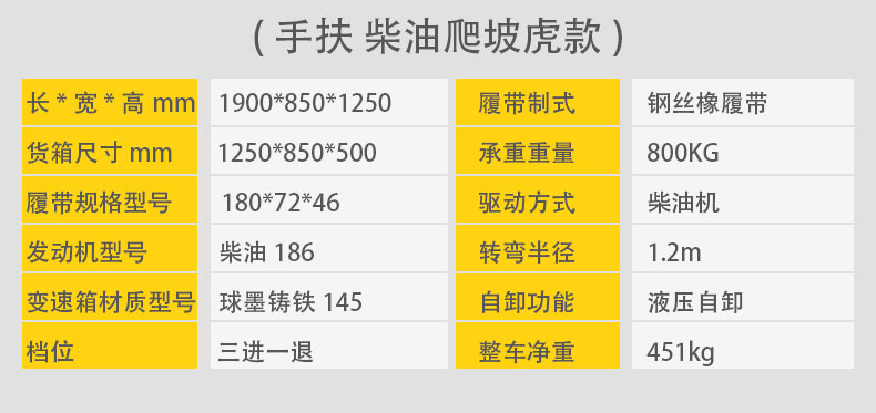 手扶式履帶運輸車它是采用手扶式的方式駕駛,自動靈活,安全可靠,可以在泥濘、結(jié)冰道路、沙漠、沼澤以及土質(zhì)松軟或氣候條件不太好的接近角和離地角行駛。它的性能穩(wěn)定,功能強勁,使用能力進一步提高。運載能力強,爬坡能力大,操作簡單,維修保養(yǎng)容易。