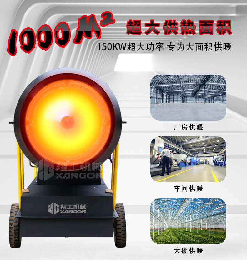 不管是室外還是室內,只要是需要提升溫度,選擇150KW燃油款暖風機就沒錯了,工業燃油柴油暖風機您是通過柴油燃燒散發大量的熱,通過電機工作,風扇把熱量給吹出來,持續升溫,并且 能自動保持恒溫狀態!適合養殖,展會,車間等大面積取暖場所。