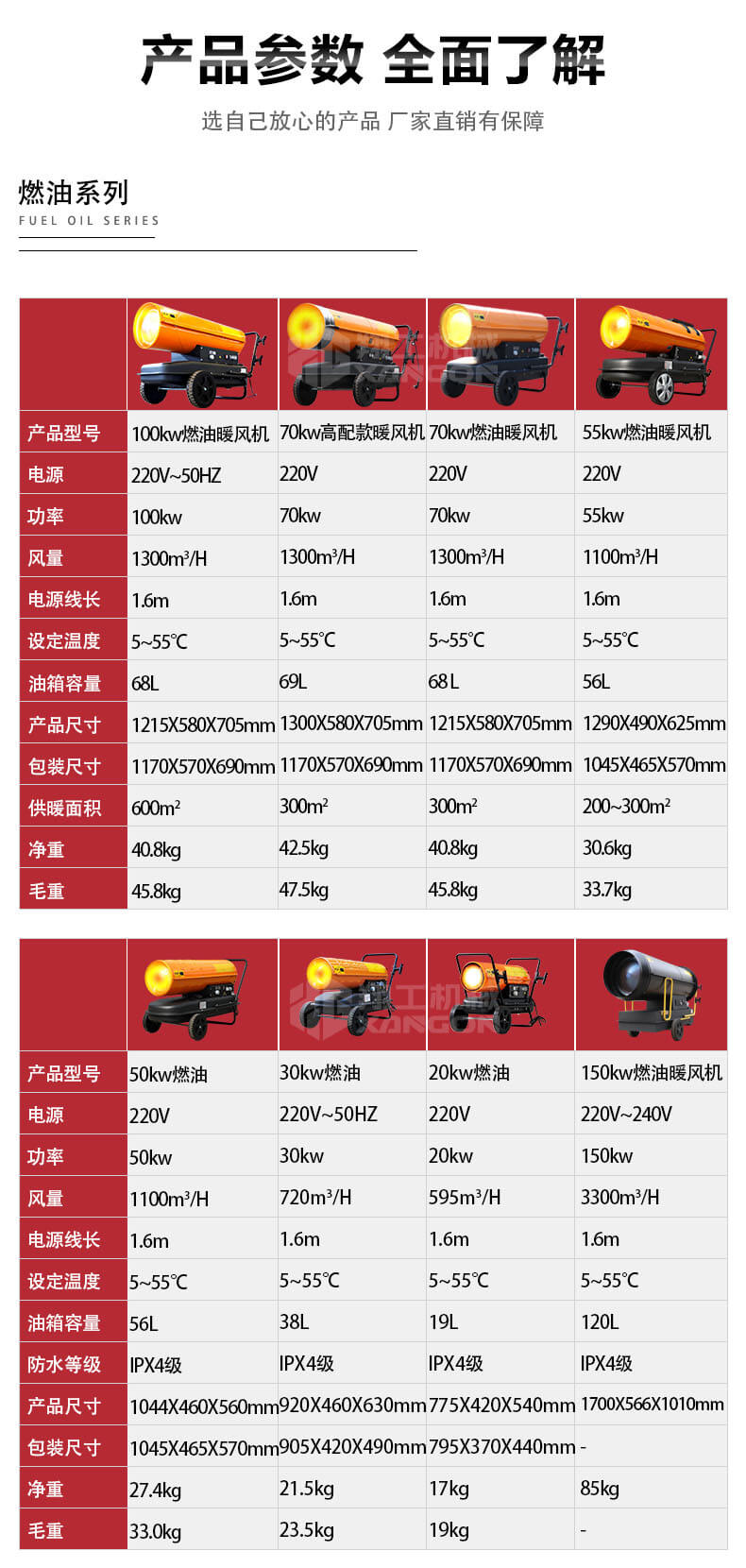 1,超大功率大油箱工程方案機,120L超大容量油箱,續航可達10小時以上。 2.雙顯,廷時功能,斷電記憶功能,可外接溫控 3.旋鈕調溫 4.風量大,送風距離遠 5.外置適明鋁過滅杯。