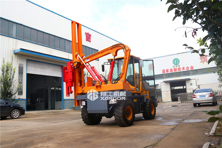 裝載機式護欄打樁機是根據(jù)市場需求和自身技術(shù)成熟的情況下面向客戶需求而研發(fā)的一款產(chǎn)品,是集裝載、打樁、鉆孔等功能為一體的新型產(chǎn)品。采用全新設(shè)計理念、精心研制整體功能,結(jié)構(gòu)模塊化兼顧的設(shè)計思想,全封閉各木式安裝結(jié)構(gòu),更利于產(chǎn)品快速安裝和轉(zhuǎn)場,可廣泛運用于公路、高速等路面護欄的樁孔鉆進工作。