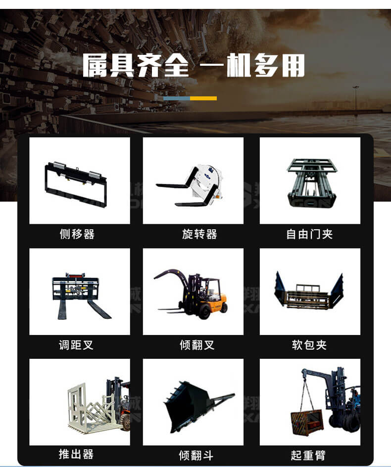 多功能四驅(qū)越野叉車可以在坡地和不平地面上進行貨物裝、卸、堆垛及搬運作業(yè),具有良好的機動性、越野性可靠性。其功能多樣,可搭配側(cè)移器、調(diào)距叉、旋轉(zhuǎn)器、軟包夾、推出器、側(cè)翻叉、側(cè)翻斗、起重臂等工具完成不同的工作。