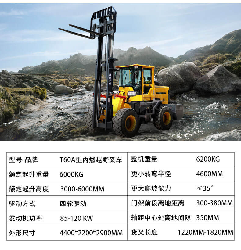 5.越野叉車發(fā)動機功率大,采用全輪驅(qū)動和越野輪胎。