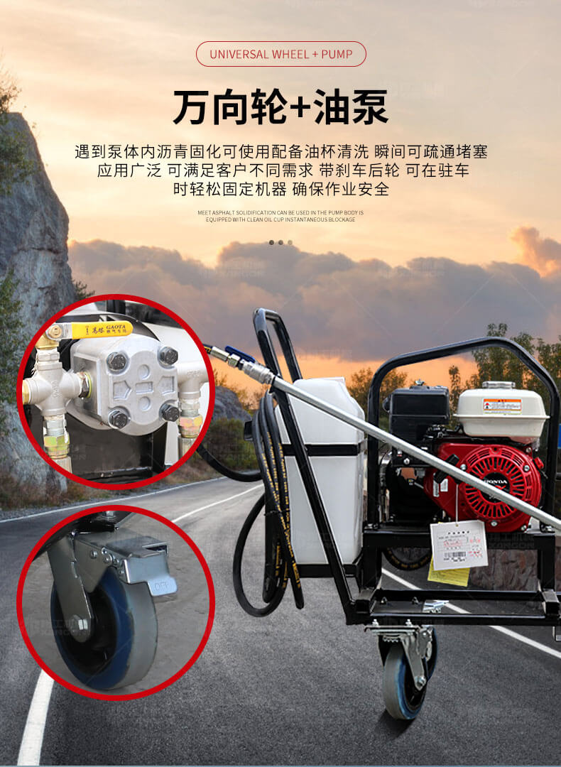 小型乳化瀝青撒布機用于修補瀝青道路上的坑槽,裂縫或?qū)磳⒗匣穆访孢M行表層噴層修復翻新,由于在養(yǎng)護瀝青道路時經(jīng)常需要對路面均勻噴灑乳化瀝青或防水材料。
