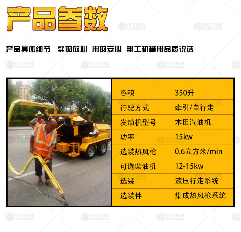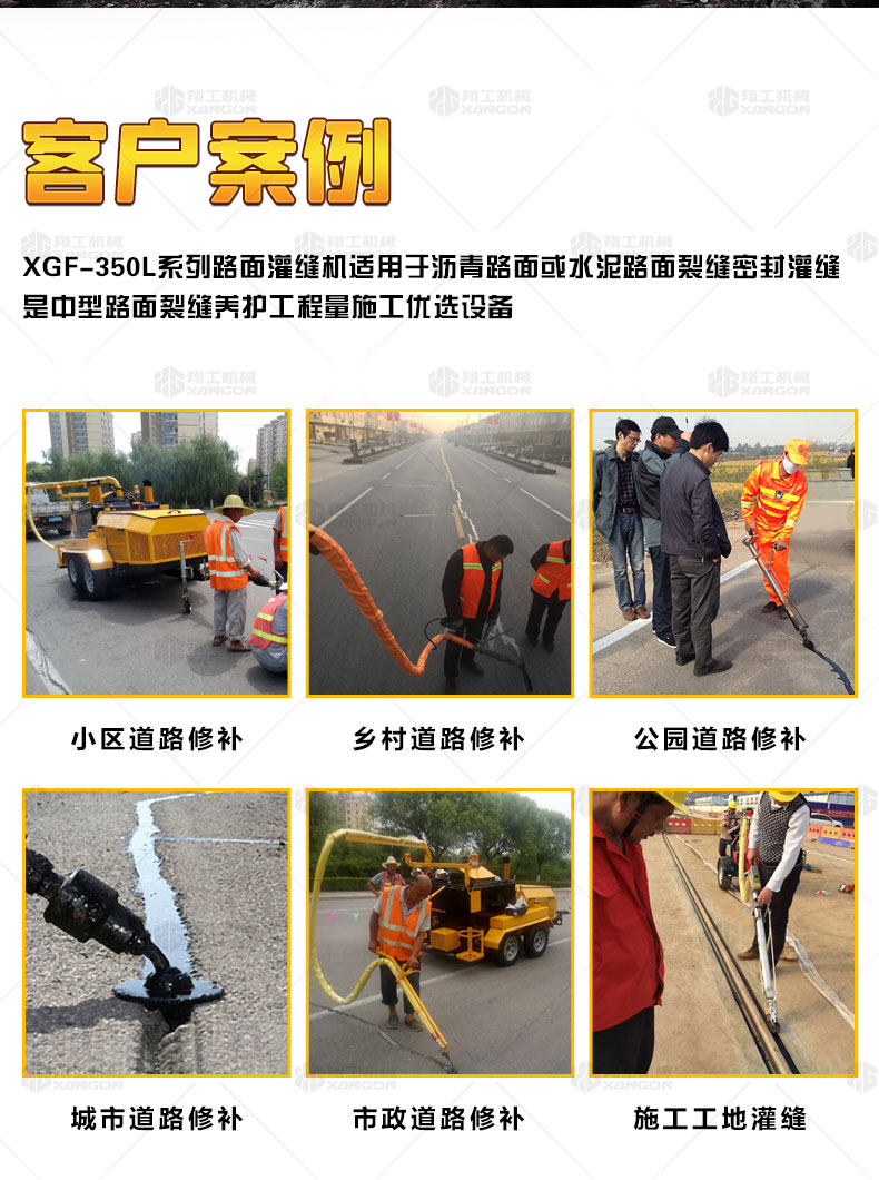 XGF-350系列路面灌縫機適用于瀝青路面或水泥路面裂縫密封灌縫,是中型路面裂縫養護工程量施工優選設備。