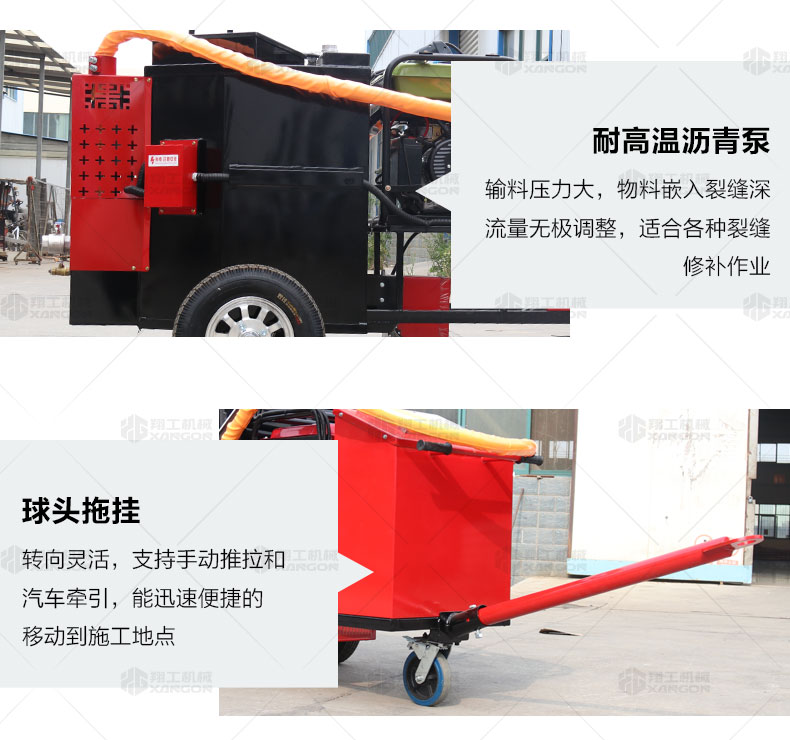瀝青灌縫機主要使用原料為瀝青灌縫膠,主要用于瀝青路面不規則裂縫的處理,恢復路面平整。