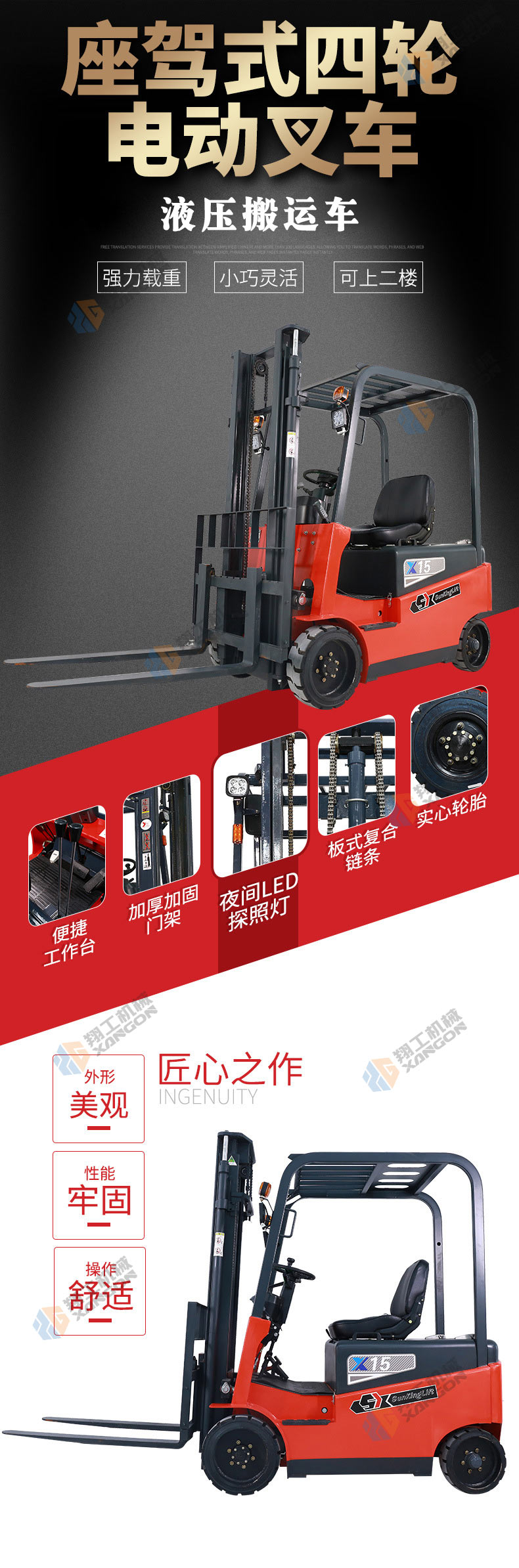 CPD1.5噸鉛酸四輪堆高車座駕式電動叉車