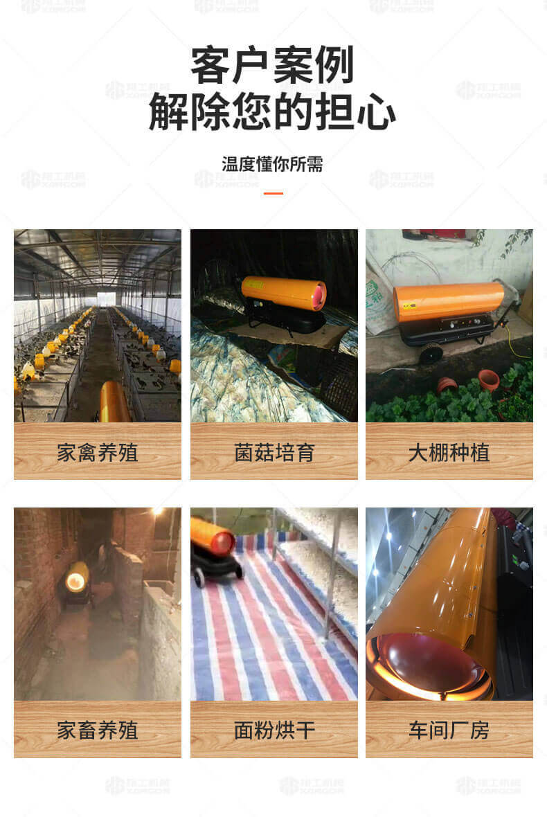 廠房、車間、養殖、建筑工地、辦公室、宿舍等局部取暖設施。 ☆任何需要加溫的場所。