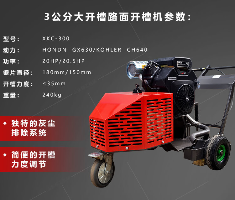 路面開槽機適用于瀝青路面灌縫修補前的裂縫打寬。該設備具有使用方便,擴縫速度快,刀片使用壽命長,擴縫寬度可調等優點。