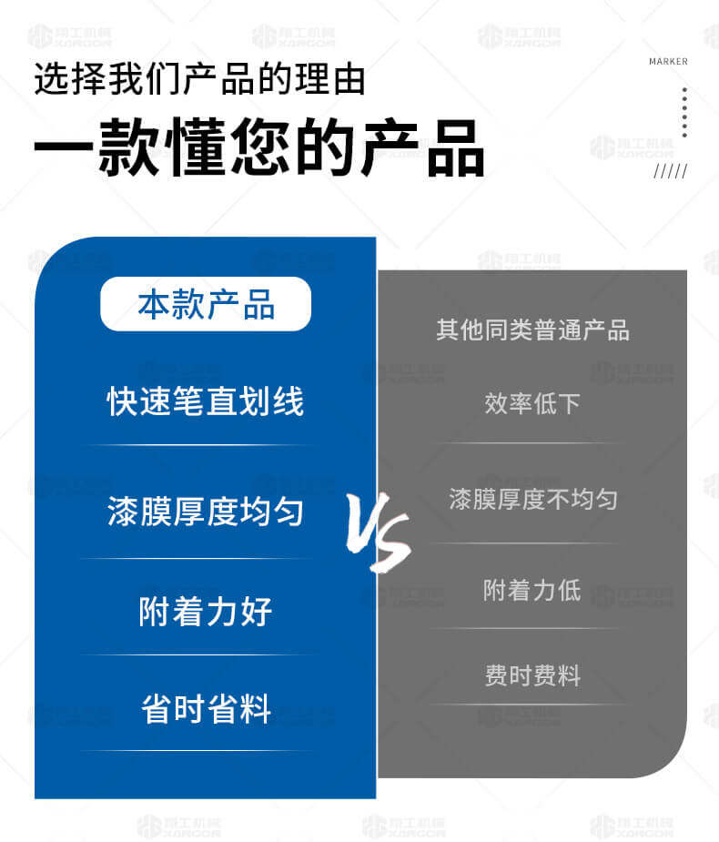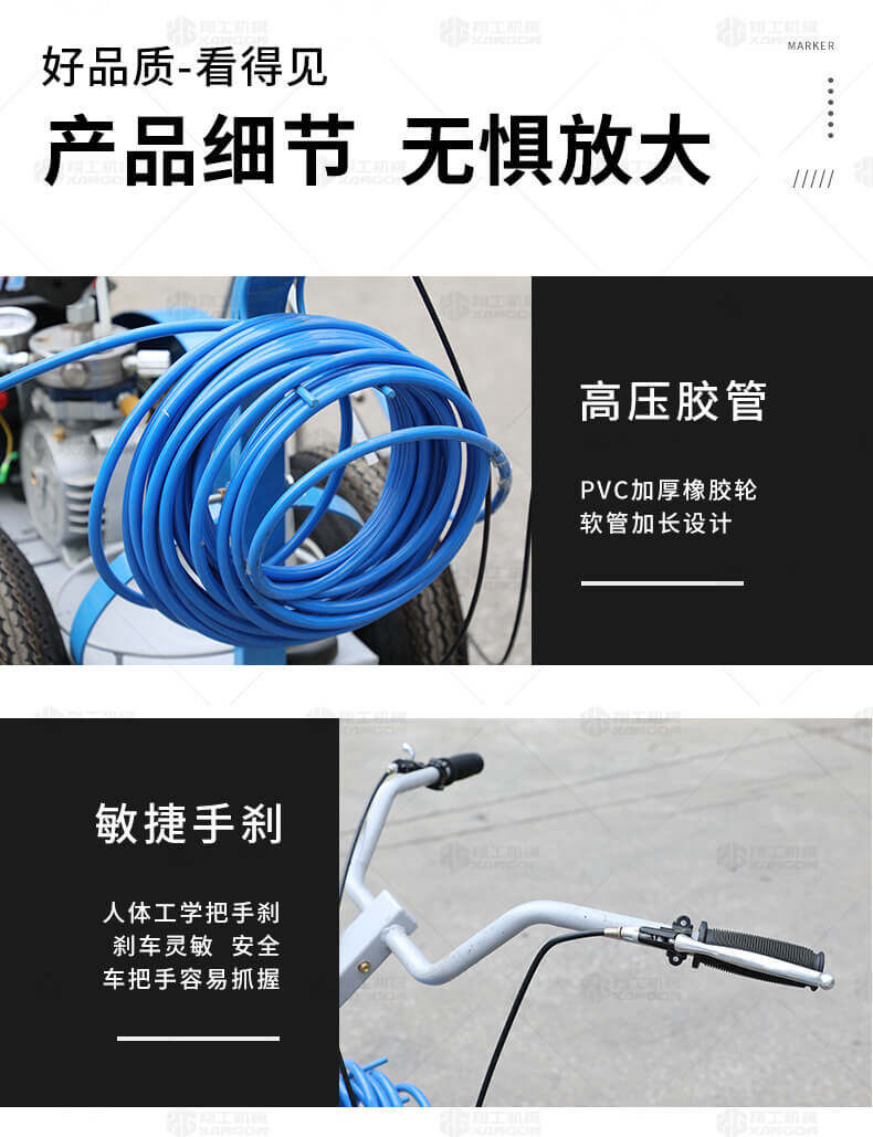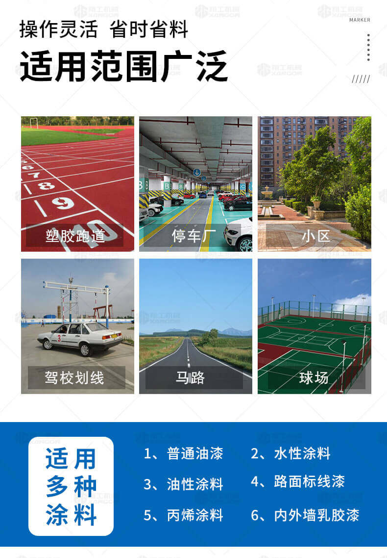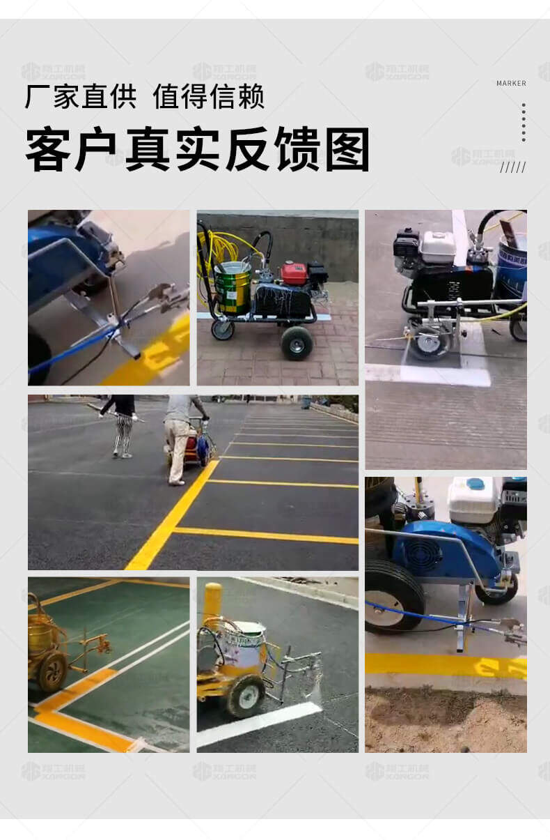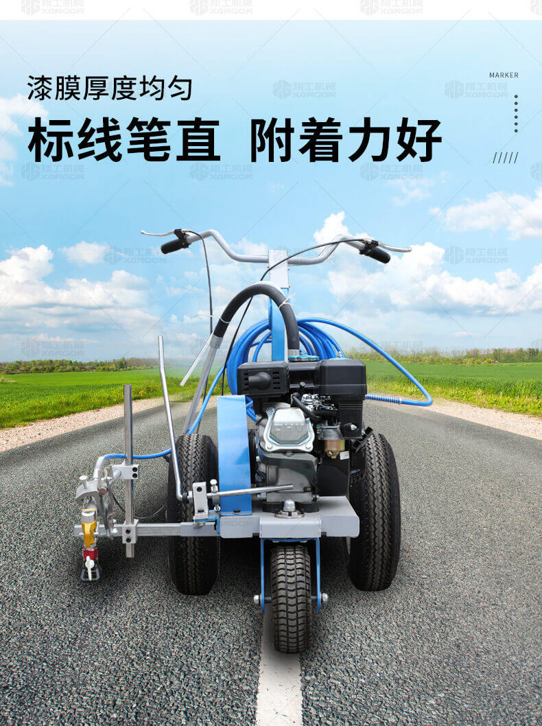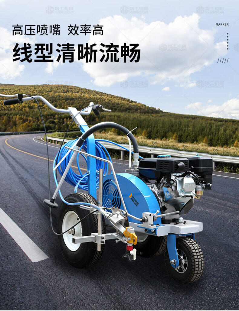 主要用于公路、市區(qū)、停車場(chǎng)、機(jī)場(chǎng)等涂劃直線、虛線、曲線、文字、箭頭等。具有劃線效果好、速度快、效率高、適用范圍廣、使用方便等優(yōu)點(diǎn)。