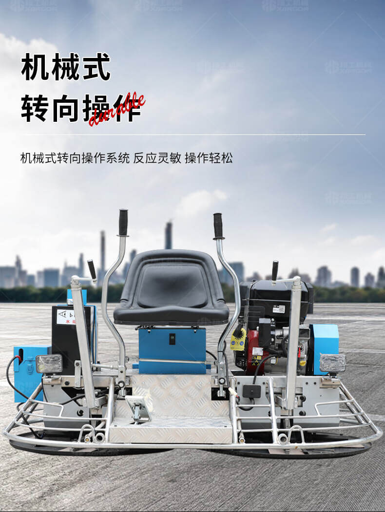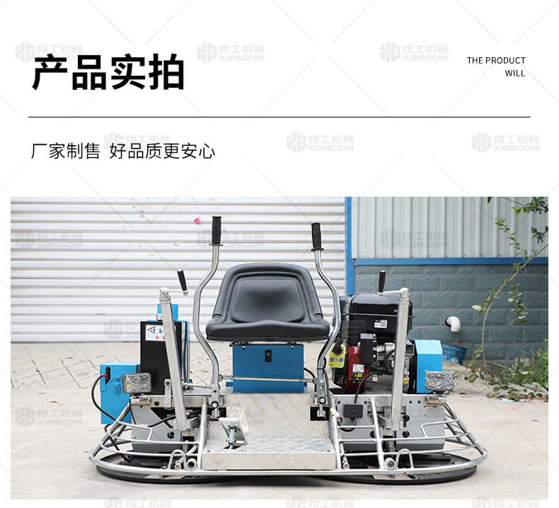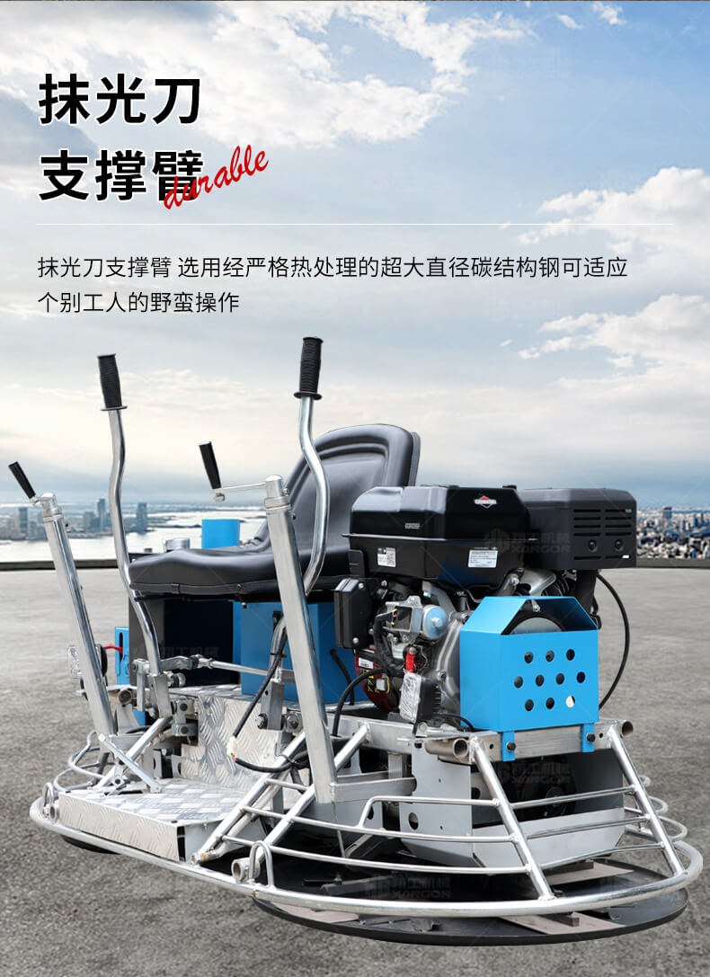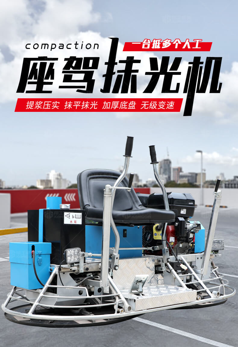 座駕式抹光機用于混凝土地面的提漿、壓實、抹平、抹光,座駕式操作大大降低了操作者勞動強度,提高了作業效率。