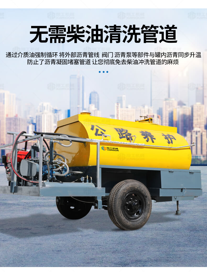 熱管—熱油式瀝青灑布(灌縫)機是一種新型的筑、養路機械設備,該產品具有結構緊湊、加溫速度快、操作簡單、勿需柴油清洗管道等優點,該產品價位低、無污染,是現代公路工程施工及養護的理想產品。