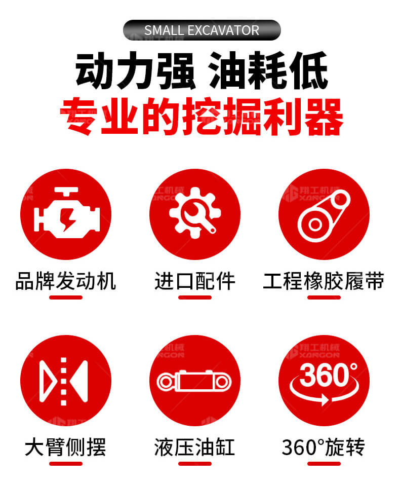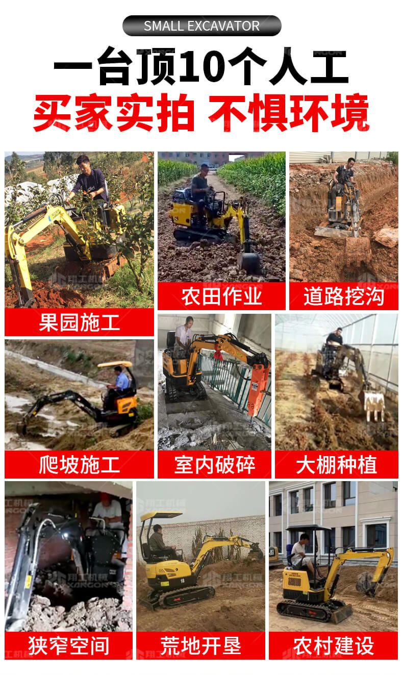 小型挖掘機主要用于小型土石方工程、市政工程、路面恢復、混凝土破碎、埋設電纜、自來水管道的鋪設、園林栽培及河道河溝清淤工程.
