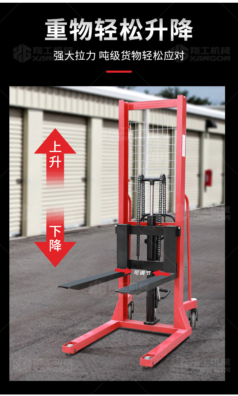 手推液壓堆高車滿足多場景需要工廠車間高架倉庫、商場超巿、港口車站、配送中心、物流中心等......