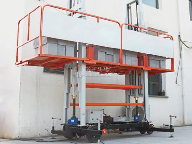 1, 蝸輪蝸桿升降,簡單明了,操作方便,減少了故障率,提高了工作效率。ST-3.5款還可以通過施工電梯上樓,填補了國內砌筑平臺的空白。