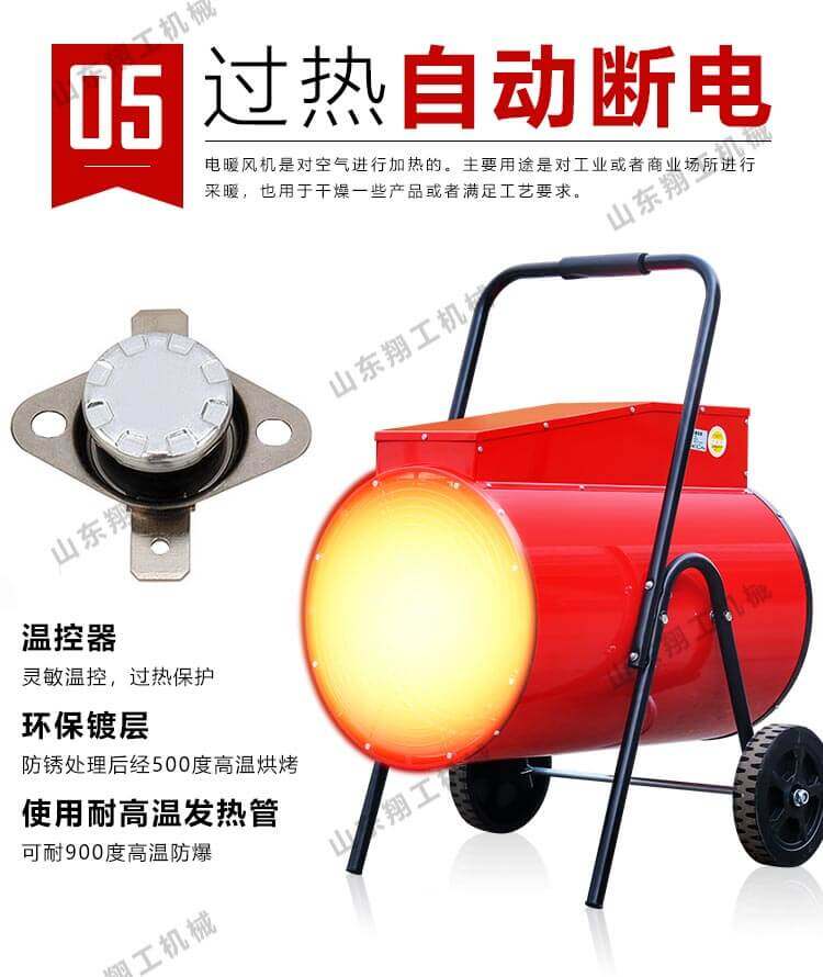 電暖風(fēng)機(jī)是由通風(fēng)機(jī),電動(dòng)機(jī)及散熱器組合而成的聯(lián)合機(jī)組。適用于空氣允許再循環(huán)的各種類型車間,當(dāng)空氣中不含灰塵,易燃性的氣體時(shí),可作為循環(huán)空氣采暖之用。