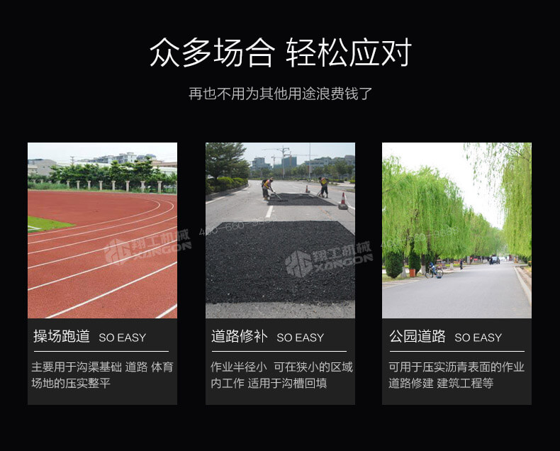 1. 作業(yè)半徑小, 可在狹小的區(qū)域內(nèi)工作,適用于溝槽回填;